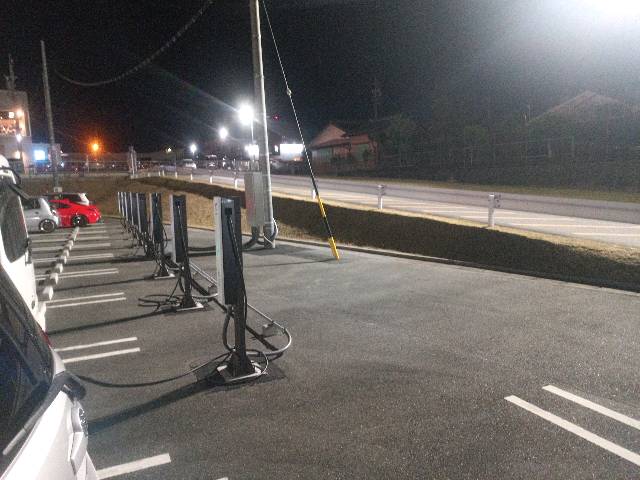 施設営業時間外は北側出入口の施錠チェーンを開閉して入場ください スーパーチャージャーV3です。 ★データチームより★ 最大出力250kWは1台で充電した場合の参考値です。