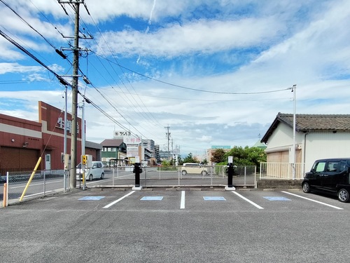 敷地の南の道路沿いにあります。駐車場内からJAーSSガソリンスタンドの方を向いて右側の長い屋根付きのところです。