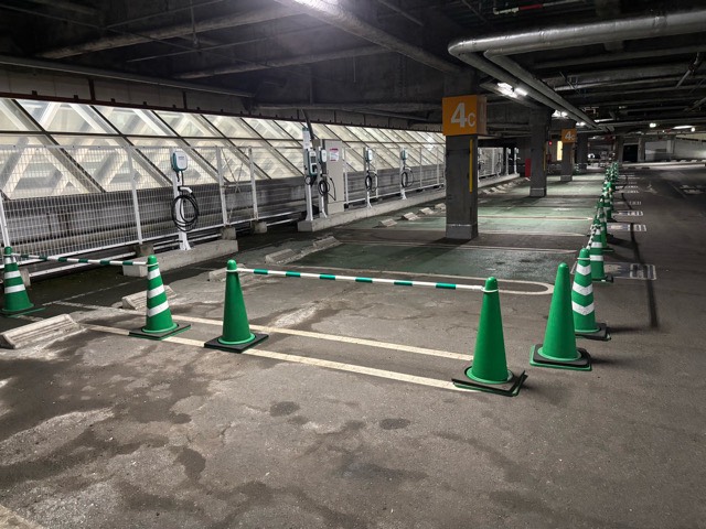 立体駐車場の3階の4Cエリアに普通充電器が10台設置してあります。 イオンは、多いわ!