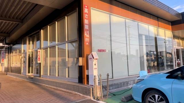 店舗建物の角にあります。 充電スペースは道路からすぐの場所でわかりやすいです。