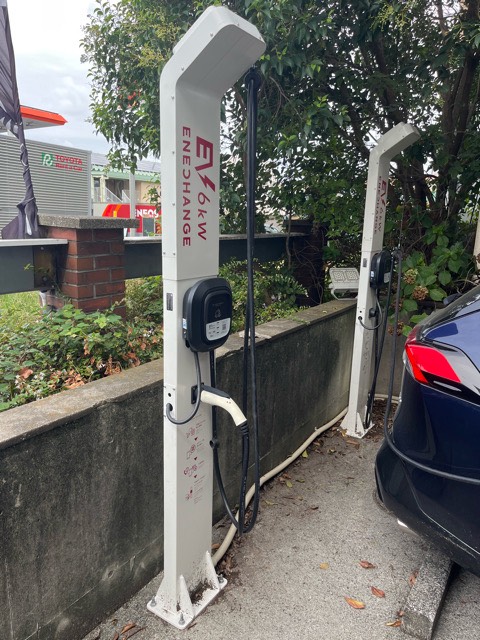 ENECHANGE 6kW普通充電器です。見た時は駐車場満車で充電出来ませんでした。朝早めが良いのですね。