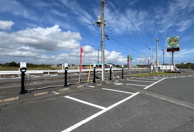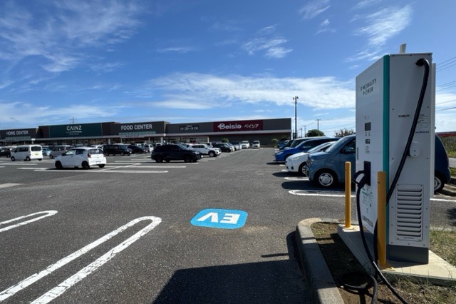 設置場所:サイゼリア前 夏季・冬季は機器保護のため30kW程度に出力制限される可能性があります。 充電30分まで。