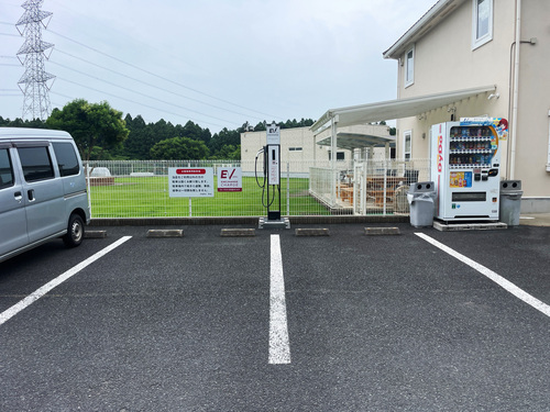 かなり古いタイプの充電器でした。出力25kwhです。「50kwhではございません!老朽化に伴い、充電設備の入れ替えを検討しています。」という貼り紙がありました。それが賢明かと。 お店も少し歴史を感じさせるたたずまいでしたが、店内はとても綺麗で清潔感がありました。ちょうど時期的にハロウィンの装飾がされていて、親しみやすさを感じました。 たまたま充電で立ち寄ったお店でしたが、駐車スペースに止めて機械を操作し始めると営業さんが出てきて、「車の向きを逆にしないとコードが届かないですよ」と教えて下さり、機械操作がうまくいかないと整備スタッフさんが駆け寄って下さり、店内で待たせてもらうとドリンクをサービスして下さりと、とても親切なお店でした!ありがとうございました。