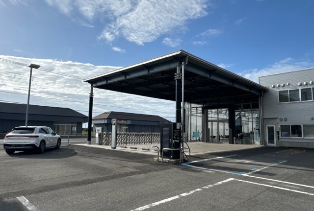 新電元工業(株)50kW充電器です。販社敷地入り右手、屋根外れに設置されてます。土曜8時過ぎにセブンイレブン側から入れました。