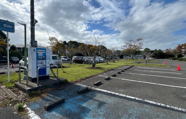 (株)東光高岳製30kW器です。芝生公園側の図書館前の駐車枠に設置されてます。