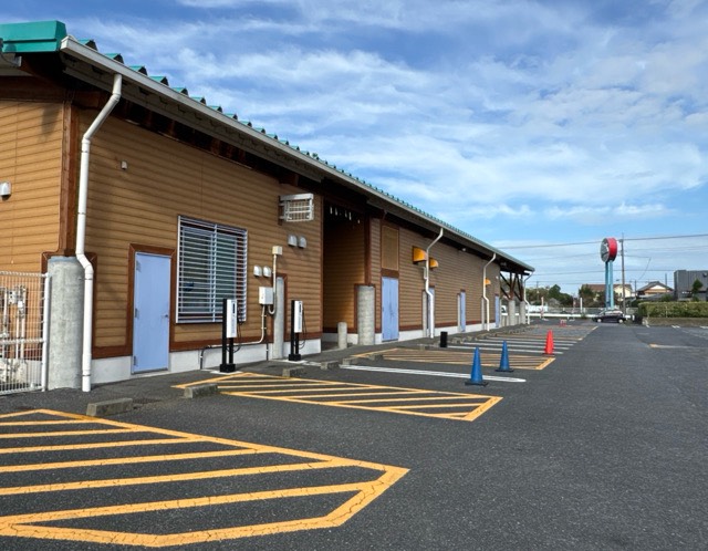ニチコン製50kW器です。店舗から離れた横芝光I.C交差点側に設置されてます。