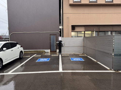 県道5号線側、建物中央あたりにあります。 受付に声をかけたら使わせてくれました。 一回1時間の充電となってます。 他社でも大丈夫です。 営業時間内で使用可能。 駐車場料金不用。 eモビリティ系のカードで使用可能です。