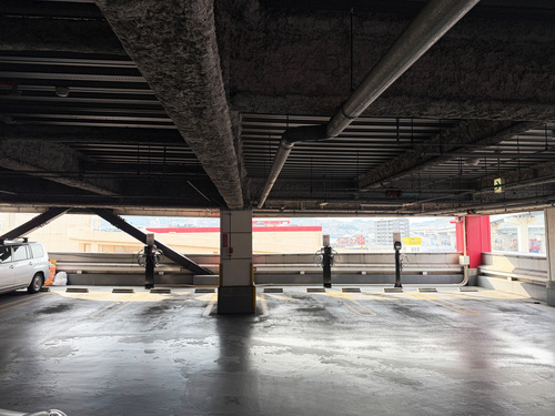 設置場所:県道602号線より敷地内へ入り、立体駐車場2階の非常階段付近の車室にEV充電器があります。 どなたでもご利用いただけます。 最大出力6kW