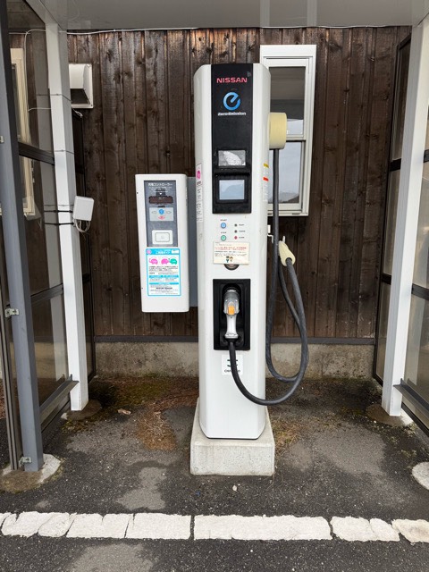 写真のチャージャーは近くの道の駅に準備中のもの。CHADEMOとNACをサポートする高出力・高性能なものだがここのものではない。だとしても近くの施設なのでエンゼルフォレストをよく利用する者としては待ち遠しい。
