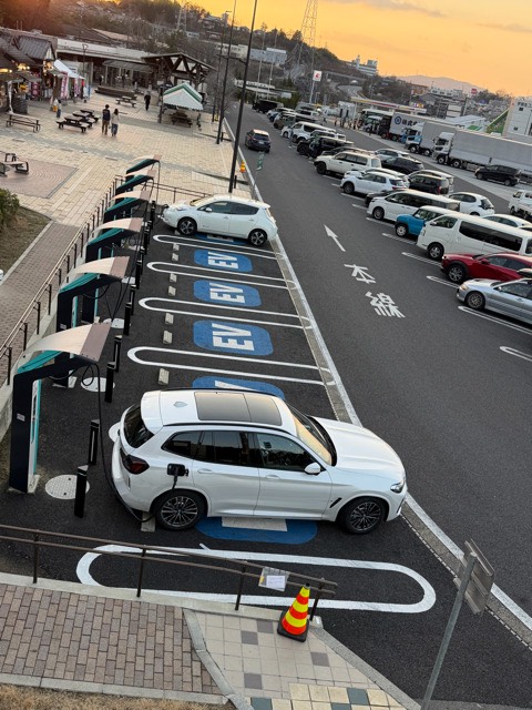 90kWの充電器が1基(2台同時に充電可)あります。 ★データチームより★ 最大出力90kWは、お車が対応しており、かつ1台で充電した場合の参考値です。