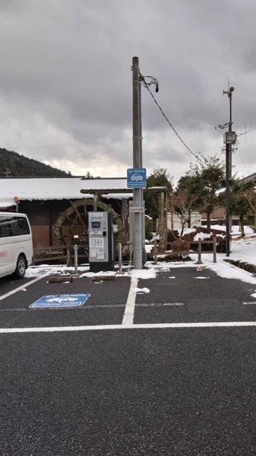 駐車場の南側にある水車小屋の前に充電器が設置してありました。割と分かりやすい場所にあります。 従量課金でクレカとPayPayが利用可能です。また1回の充電で最大45分利用可能です。