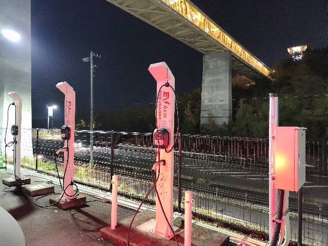 三洋堂の駐車場も兼ねている様子です。 深夜でしたが利用できました。 90kW出力は15分のブースト型です。