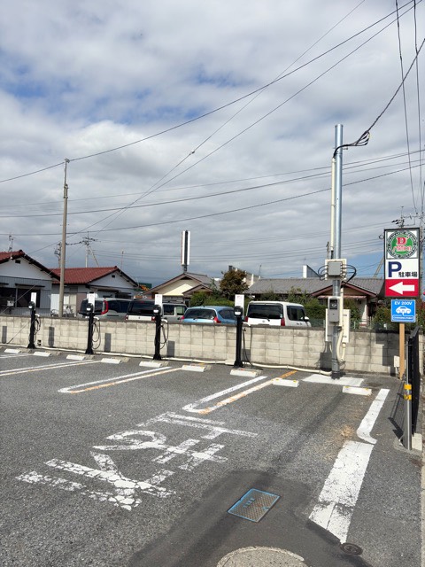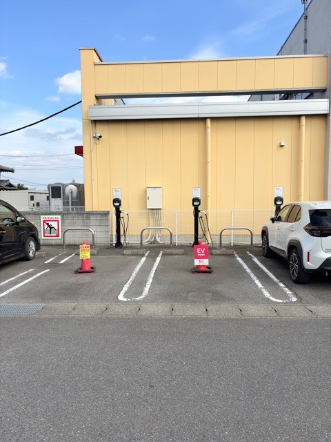 設置場所:292号線の草津中学校の向かいのT字路を入り直進、右手に永田屋があり、入口に向かって左手にEV充電器があります。道路向かいの永田屋専用駐車場とは異なります。