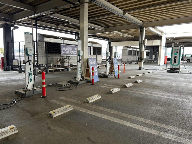 90kWの充電器が1基(2台同時に充電可)あります。 ★データチームより★ 最大出力90kWは、お車が対応しており、かつ1台で充電した場合の参考値です。