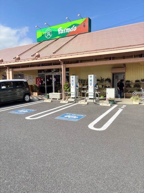 急速充電器が2基あります。側面のプレートから型番はNCQ-A302E、30KWだと思われます。店員さんに確認したら駐車場入口は閉鎖しないので、閉店後も24時間使えるのでは?との回答