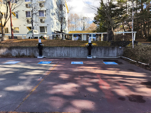 冬季休業あり。 設置場所:敷地入り口から入り、道なりに進むと右側に駐車場があります。最初の駐車エリア左側と、2つ目の駐車エリア右側のそれぞれ手前側の車室にEV充電器があります。 どなたでもご利用いただけます。車室が埋まっている際はフロントにお声がけ下さい。 最大出力6kW