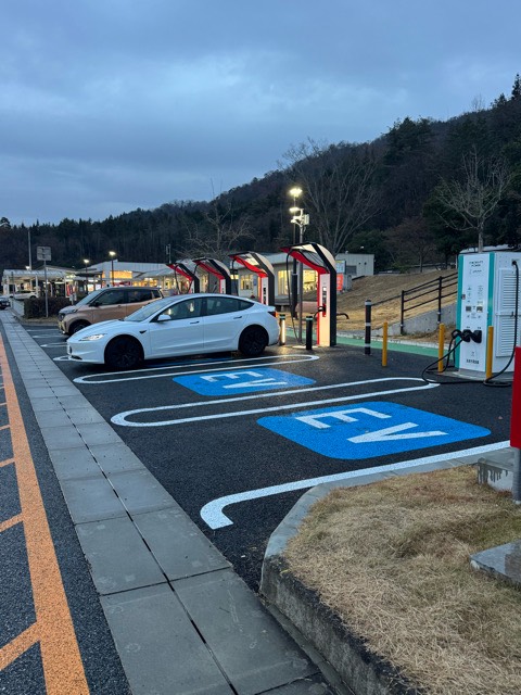 150kWの充電器が1基(4台同時に充電可)と90kWの充電器が1基(2台同時に充電可)あります。 ★データチームより★ 最大出力150kW、90kWは、お車が対応しており、かつ1台で充電した場合の参考値です。