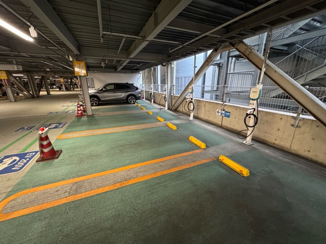 この施設はシステムの都合上、(1)と(2)に分かれて登録されています。 -------------------- 設置場所:立体駐車場3F西側に6基、立体駐車場4階西に9基あります。 充電6時間までの範囲で選択可。 ENEOS Charge Plus会員の場合、最大出力6kW