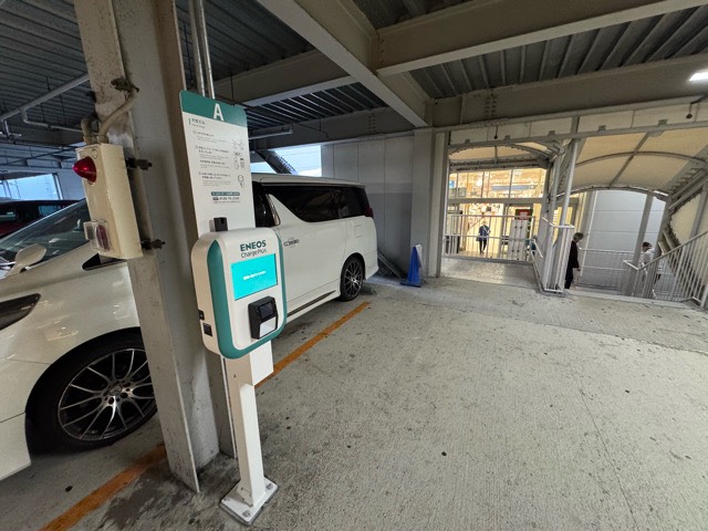 [普通充電器] 2025/11/15よりeMPスポットとして運用。 【ビジター料金やeMP未加盟充電器の情報等】 駐車有料(平日4時間まで、土日祝日3時間まで駐車無料、施設利用により優遇あり) 認証システム:ENEOS Charge Plus ◆ENEOS Charge Plus認証の場合 EneKey、WAON、クレジットカード支払いも可能。 [普通充電器] ENEOS Charge Plus:1分/6.6円 /3.3円 (会員・6kW/3kW) ENEOS Charge Plus:1分/3.85円 (非会員・3kW上限)