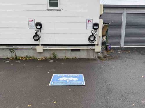 道路沿いから充電場所が見えるので空いているか分かりやすい。飛び込みで寄っても快く受け付けていただけました。