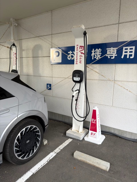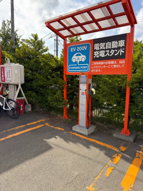 店舗入り口横にある充電器の他にも駐車場入り口付近にも設置されてました。