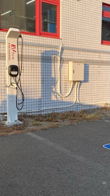 ENECHANGE認証 PHIHONG TECHNOLOGY CO.,LTD製6kW充電器×2器です。敷地入り右手奥に設置されてます。