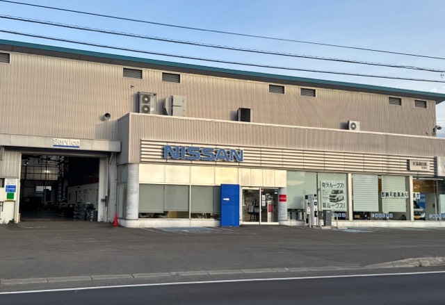 日産製44kW器です。ショールーム前、R12沿いに設置されてます。2025/10/18 8:00まで使用出来ない様です。