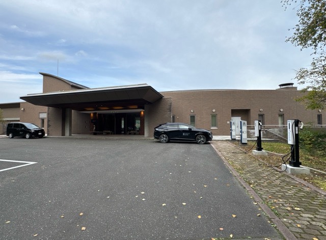 日東工業(株)製TerraChargeの6kW充電器です。アプリ認証で充電します。エントランス前に設置されてます。隣に日東工業(株) 製(販売:(株)豊田自動織機製)3.2kW×2器も設置されており「誰でも使用可能」とのことでした。ホテル車、ブラックARIYAカッコいいですね!