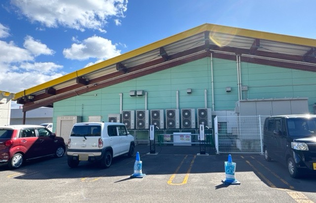 TerraCharge認証日東工業(株)製6kW充電器×2器です。建物裏手(北側)に設置されてます。