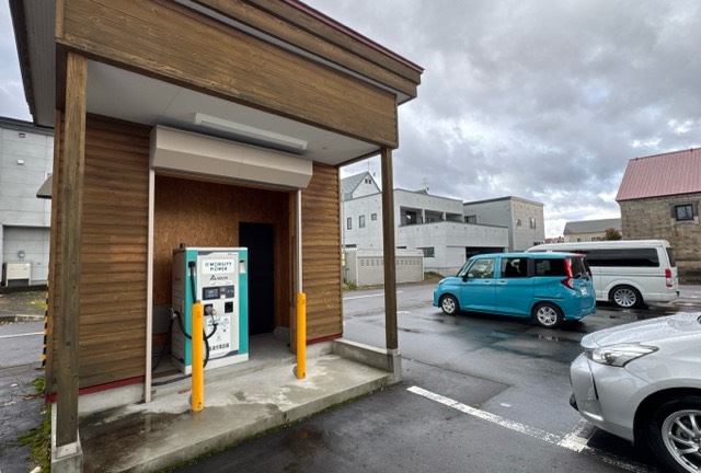 DELTA(台湾)製50kW器です。道の駅内駐車場の北東角に設置されてます。2025/10/7時点、「使用禁止」の張り紙ありシャッターが閉まってました。当分、使用出来ないようです。富良野↔︎旭川間で唯一の急速充電器なので早急に復旧お願いしたいです。