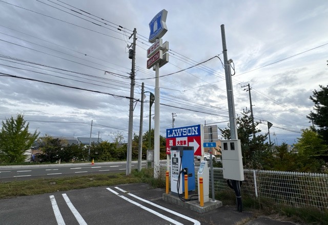 HASETEC製25kW器です。店舗駐車場の富良野側端に設置されてます。中富良野には他にないので感謝感謝です!が、そろそろ高出力器への更新お願いしたいです。
