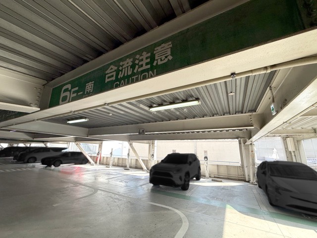 6F-南に行くと上がった目の前にあります。 6台に増設されました。素晴らしいですね。 混雑のない時に訪れたので、非充電車はいませんでした。きちんと避けて駐車してくれているようです。 混雑時にはやはり非充電車の駐車する問題はありそうなので、コーンは必要だと思います。時折2台で充電されているので、コーン3つぐらいはあっても良いかと思います。 充電器使用率が上がってくればその都度バランスの取れた対処法にアップデートしてもらえれば嬉しいです。 充電番号は右から若い順です。、