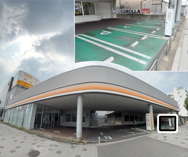 充電器は店舗右手のお客様駐車場に国道に背を向けて立っています。ふだんもカバーが掛けられていて、充電するときに外すらしい。
