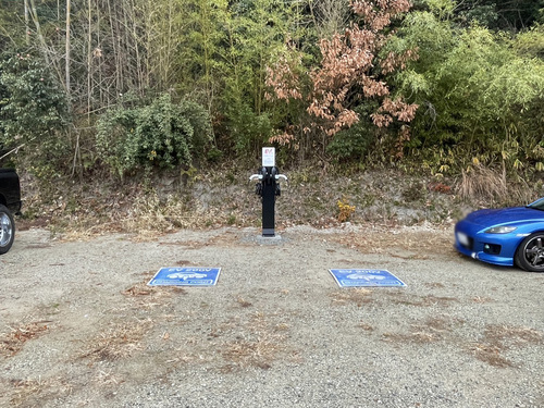 道路から見て左側(東)の道路寄りにあります。文書と写真追加 立派な入り口から入って奥まで進んで左折します。その向きから左奥の道路に近い車室にあります。 この時も紅葉のライトアップでこんざつしていましたが、見事に空いていました。快適でかつ6kWの充電、とても良いところに設置していただきました。他の観光名所もぜひ、かざすだけで使えるエネチェンジでお願いしたいところです。
