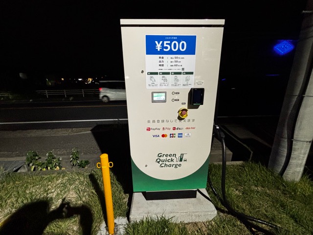ここの充電器を初めて利用しました。クレカでそのまま利用でき、料金も1kWh50円で安かったです。また利用しようと思います。