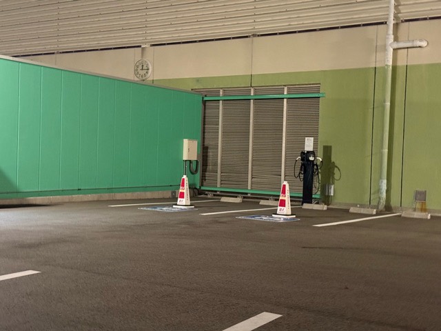 敷地に入ってすぐの左側、店舗出入り口付近にあります。屋根付きでいいですね。文書追加2と写真追加 付近に回転寿司や、丸亀製麺があり、30分で帰れそうなら良い感じだと思います。 エコQ電の値段が1分45円(税抜)になっています。出力などを考えても1分30円ぐらいになってもらえたら、嬉しいと感じます。