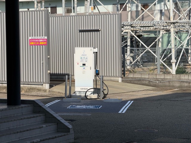 敷地に入って奥に進むと左前方にあります。 新しい充電器に更新されています。(まだ稼働はしてないかと思います。