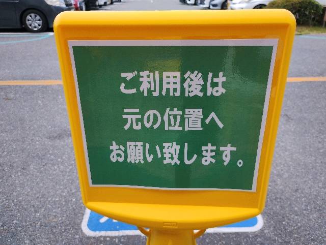 イオンモール伊丹昆陽のCHAdeMO充電設備は、2台が同時に充電出来るようになっているものの、それなりの確率で到着してもすぐに充電出来ないことも多い人気スポットです。 エンジン車駐車防止対策として「充電専用」その裏側には「ご利用後は元の位置へお願い致します」と記載された専用のカラーコーンが充電用駐車スペースそれぞれに置いてあります。 カラーコーンが置かれる前はエンジン車による充電用駐車スペースの占拠が頻発していました。 複数のEVユーザーがイオンモールへ要望した成果として、イオンモール側ですぐに出来る対応策としてカラーコーンを置いてくれるようになった経緯が有ります。 エンジン車駐車防止対策として有益な専用カラーコーンを「時間帯によっては元の位置に戻さずに放ったらかしで充電用駐車スペースから離れても良い」ことを推奨するような施設側のルールに反するクチコミを平然と記載している方もいるみたいですが、施設側がお願いしているルールはきちんと守りましょう!! 「充電用駐車スペースから離れる時に一時停車してカラーコーンを動かすのが面倒」だとか自分に都合の良い解釈だけでクチコミするのではなく、全てのEVユーザーが「アテに出来る充電設備」となるように、これまで築き上げてきたものを打ち壊すようなコメントは控えて欲しいです。 「誰が見ても気持ち良いコメント」とは程遠いコメントなので記載させて頂きました。