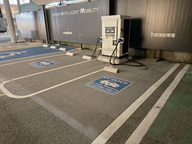 [急速充電器] 90kWの充電器が1基(2台同時に充電可)あります。 ★データチームより★ 最大出力90kWは、お車が対応しており、かつ1台で充電した場合の参考値です。 [普通充電器] コンセントは店舗の営業時間内のみお使いいただけます。 日産車限定。