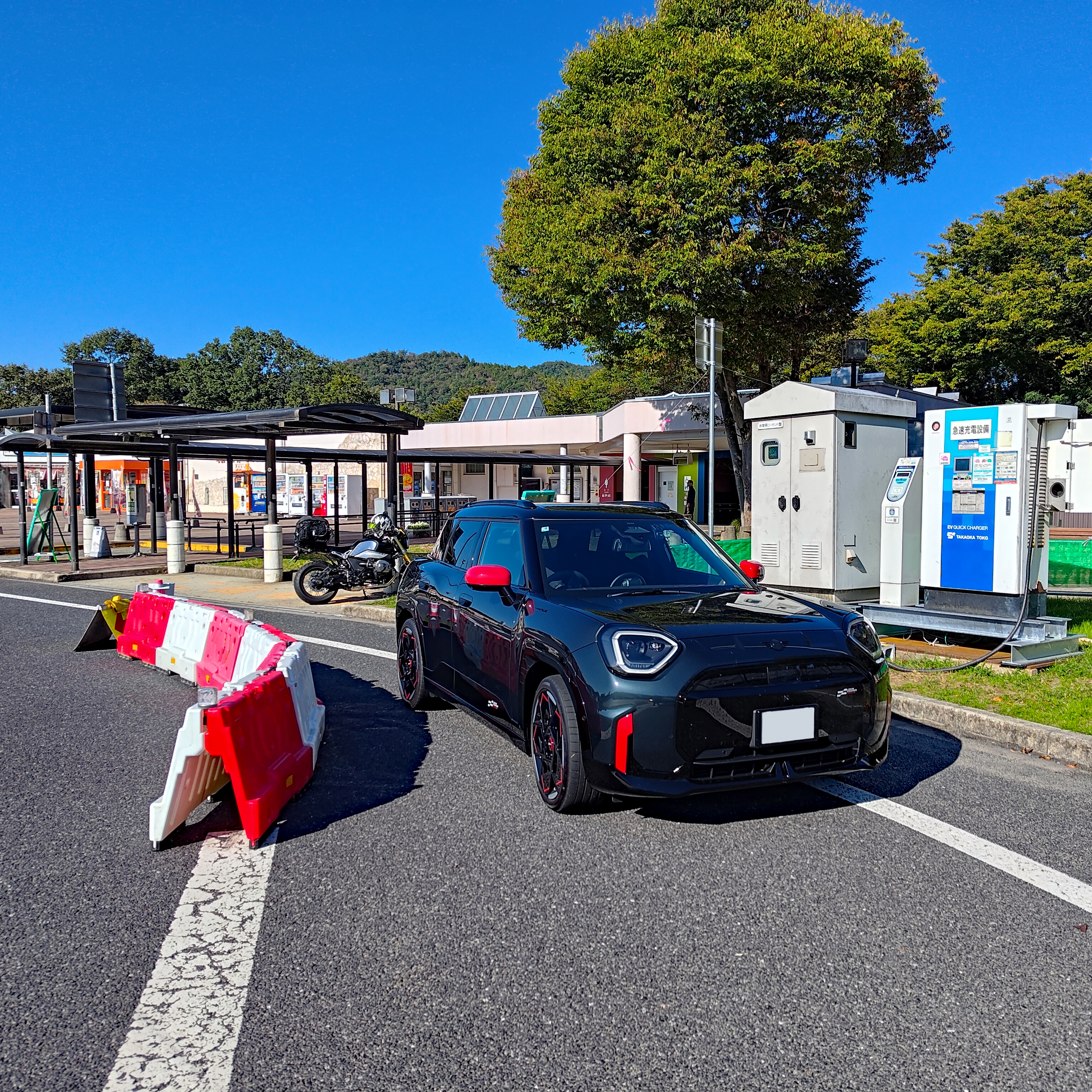 ■利用日時:2025年10月23日 14:18 ■充電時間:30分 ■充電電力量:18.3kWh ●車はMINI JCW ACEMAN E、充電カードはMINI Chargingを使用。 ●先客はおらず競合もなし。私1台のみ。 ●充電駐車区画はSA入口側から離れた場所。駐車スペースは仮設状態で狭い。 ●私は40kW急速充電器を30分使用。充電中ずっと最大出力40kWあたりでしっかり充電できていた。 ●充電終了後も並んで待っている車は無し。 ●新急速充電器の設置工事中。工事終了予定は2025年12月26日。発注者:e-Mobility Power/施工者:ミライト・ワン 東海支店。本工事のため現行急速充電器は狭い駐車場所へ誘導されている。
