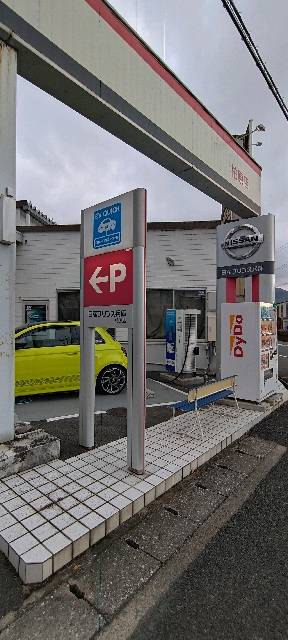 EV用CHAdeMO充電設備は、敷地北側の駐車スペース西寄り(青い駐車スペース左端から更に左)に設置されています。 充電設備は、最大125A流れるニチコン製です。 液晶画面には「出力可能電力50kW」と表示されていました。 私のアイ・ミーブXで充電を行ったところ、設備最大の125Aで充電が始まりました。 eエブリイ発売前にCHAdeMO充電設備の運用を始めたことは評価できますが、店舗営業中しか利用出来ないのは大きなマイナス。 実際のユーザーニーズや近隣の日産店舗が24時間運用していることを考慮しなかったのが大きな疑問。 別の言い方をすると、三菱や日産と比べて10年以上後出しジャンケンであることのメリットを活かせていません。 電力会社からの引き込み線は店舗入口(EV QUICKの表示板そば)なので、その横に充電設備を設置し、バリカーをその周囲に設置すれば24時間運用が可能なのに。