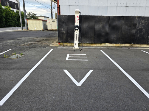年末年始(12/31-1/1)休み 設置場所:駐車場に入って左に曲がり、右手側の建物沿いにある車室にEV充電器があります。 どなたでもご利用いただけます。 最大出力6kW