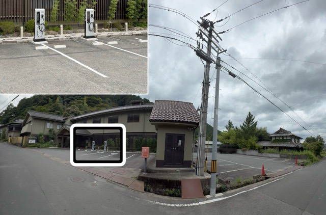 ローソン店舗の正面の道路より(北側)にあります。 写真改訂 ここは「EVおでかけ推進プロジェクト2025」の対象ではない?のが意外でした。