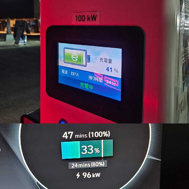 IONIQ5で96kw前後出ています。 100kw対応なのは左側だけです。 見た目殆ど同じなので要注意です!