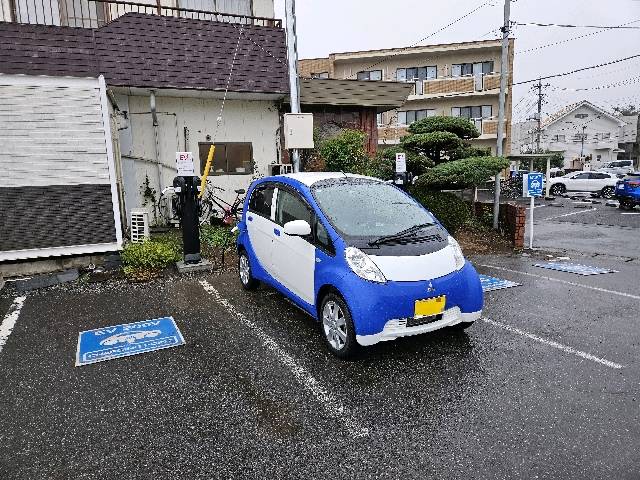 設置頂きありがとうございます。ホテル山久さんのご協力に感謝いたします。 (リクエストした場所に設置されて嬉しいです!) 4基設置されていて駐車枠にはEV200Vの表示、 駐車場自体もゆとりがあって停めやすいです。 TXつくば駅近隣で駐車料金がかからず、24時間利用可能な普通充電は貴重だと思います。充電設備のないマンションに住んでいる人間には本当に有り難いです。 宿泊で来られるEVユーザーさんが増えますように…!