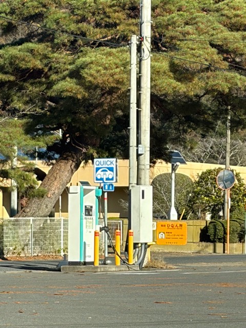 駐車場入って右奥にあります。 初期型の日産製44kW機のためディスプレイが見にくいですね…