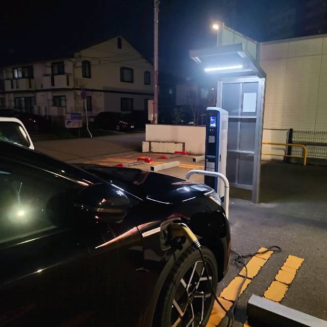 充電器は駐車枠がL字になっているところの隅にあるので、いくつかの枠で届くと思います。