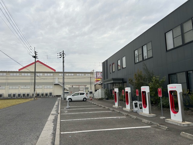 レイボー通りの宮脇書店(南本店)の裏側(東側)にあります。充電しているテスラ車は1台くらいしかみたことがなく、ほとんどいつも空いてます。