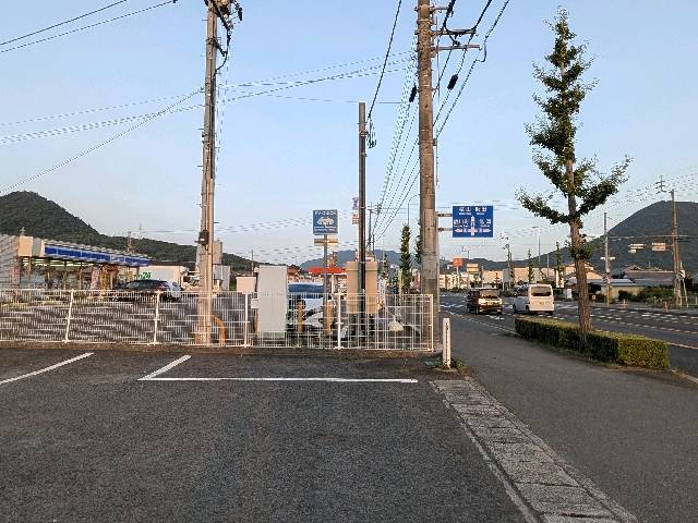 ローソン駐車場の入り口、国道側にあるので、空いてるかわかりやすいです。 撮影方向は東向きで、国道は写真左です。