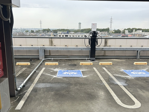 設置場所:立体駐車場1階、65~69番の車室にEV充電器があります。 どなたでもご利用いただけます。ご利用の際は必ず店内カフェカウンターにお声がけください。 最大出力6kW